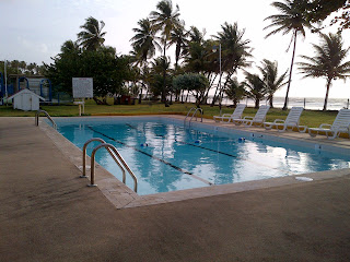 Empty: A swimming pool devoid of people, but then again who wants to swim in a pool when the ocean is fifty footsteps away.